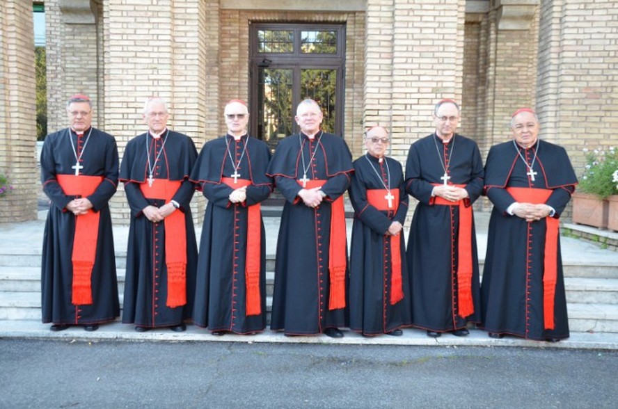 Cardeais brasileiros em frente ao colégio Pio Brasileiro,em Roma — Foto: Robson Caramano/CNBB