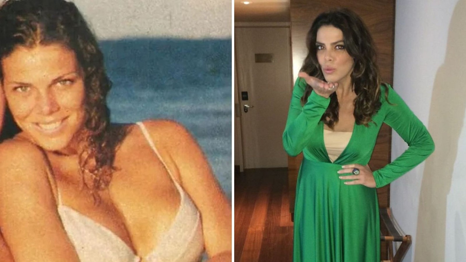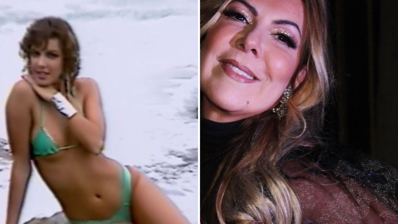 Luciana Vendramini também participou do "Garota do Fantástico",mesmo ano em que participou do concurso para ser paquita da Xuxa. Após a repercussão,ela iniciou trabalhos como atriz e modelo. Ela esteve em "Vamp","O rei do gado" e "Malhação". Os últimos trabalhos na TV foram a novela "Espelho da vida" e o reality "Super chef celebridades",em 2019 — Foto: Reprodução/Globo e Reprodução/Instagram