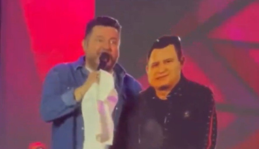 A ausência do companheiro,porém,não foi total. Em determinado momento da apresentação,um integrante da equipe de produção colocou no palco um totem de papelão representando Marrone,que foi abraçado por Bruno — que ainda brincou fazendo ‘um par de chifres’ sobre a cabeça do irmão e colega.