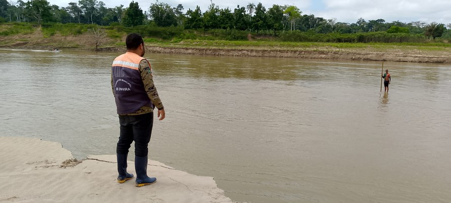 Na foz do Rio Jurupari,um dos afluentes do Rio Envira,já é possível fazer o trajeto entre as duas margens a pé. No fim de semana,a profundidade chegou a 1,22 metro. No ano passado,no mesmo trecho,a profundidade era de 6,77 metros.