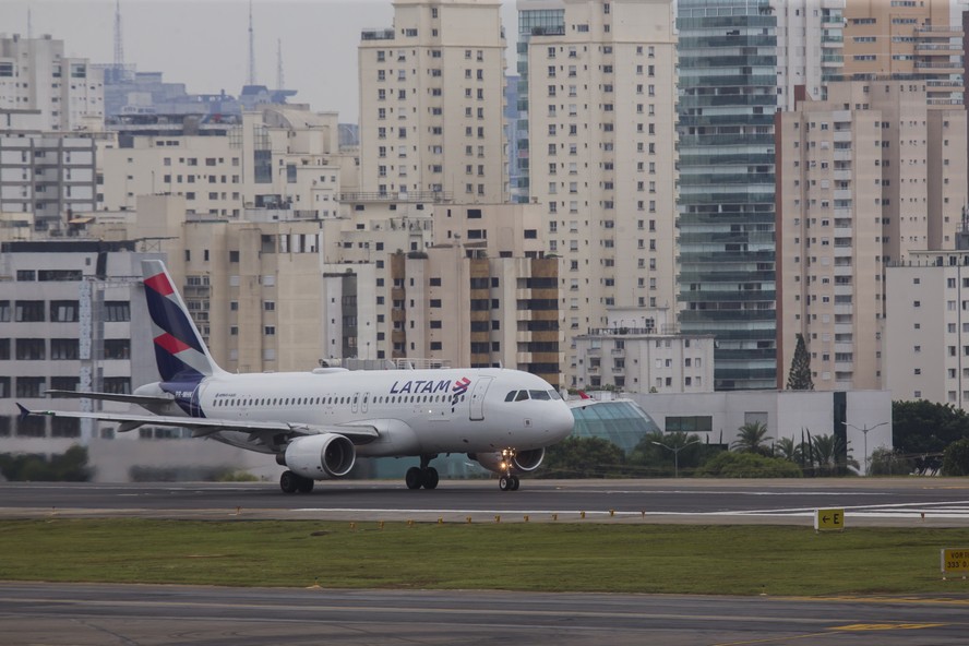 Avião da Latam Brasil na pista do Aeroporto de Congonhas,em São Paulo — Foto: Edilson Dantas/Agência O Globo