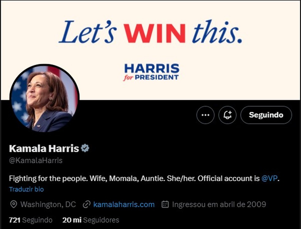 Nova identidade visual da campanha de Kamala Harris — Foto: Reprodução/X