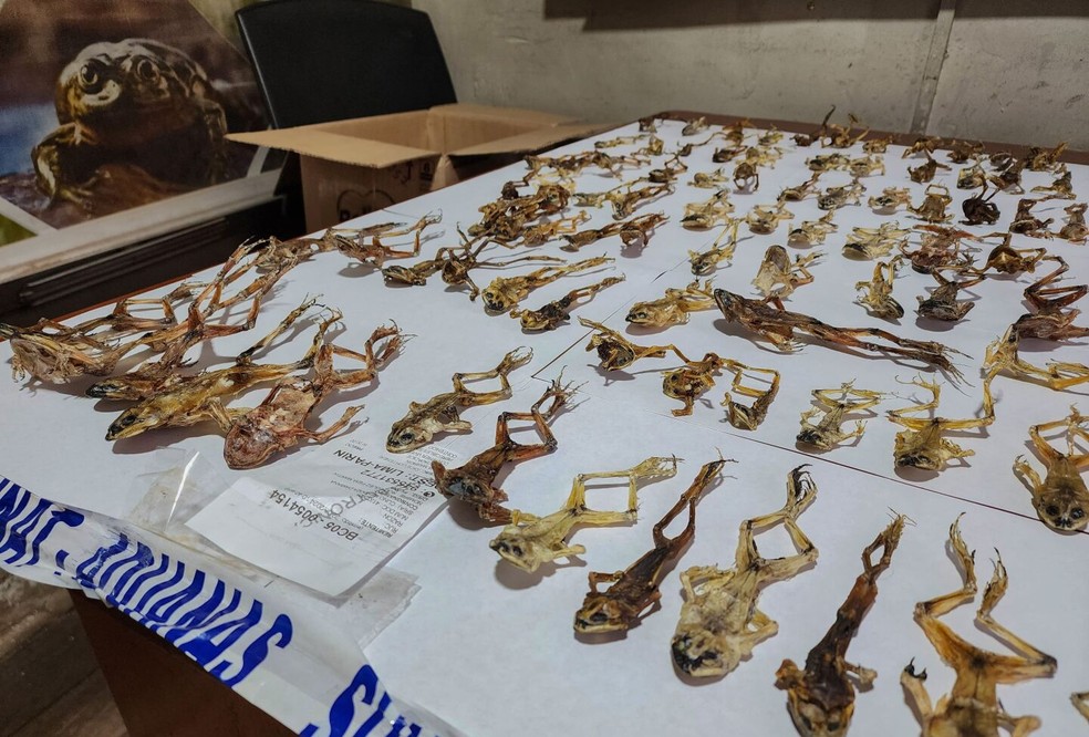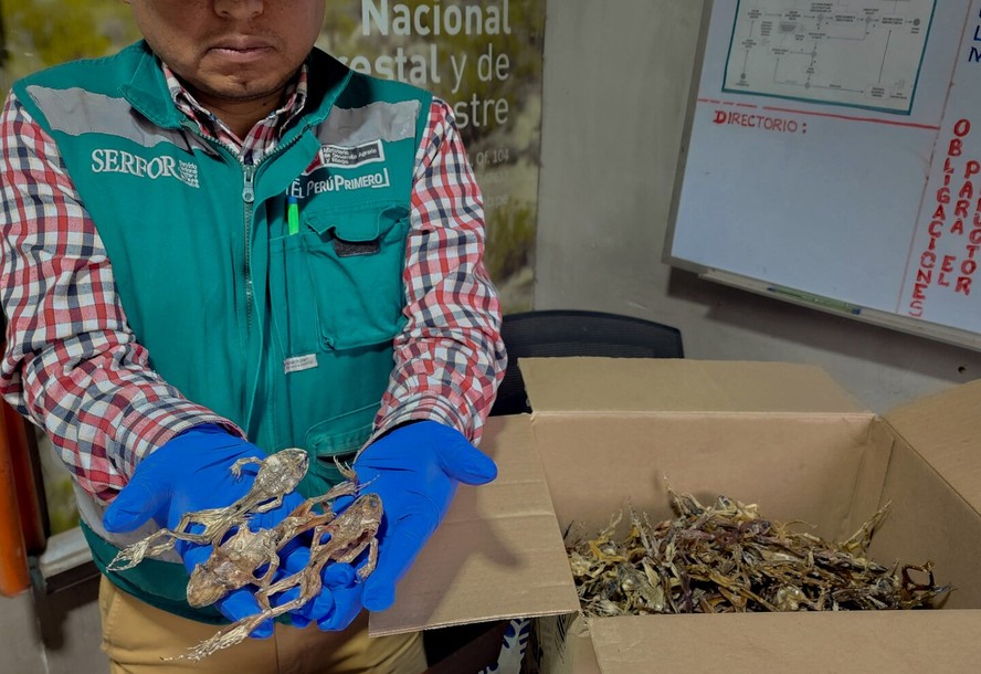 Autoridades peruanas apreenderam,na última quinta-feira,390 rãs mortas na cidade de Puno,região localizada a 1.200km a sudeste de Lima. Considerados afrodisíacos e ameaçados de extinção,os anfíbios foram encontrados dentro de um veículo de entrega,segundo o Serviço Nacional de Silvicultura e Vida Selvagem (Serfor).