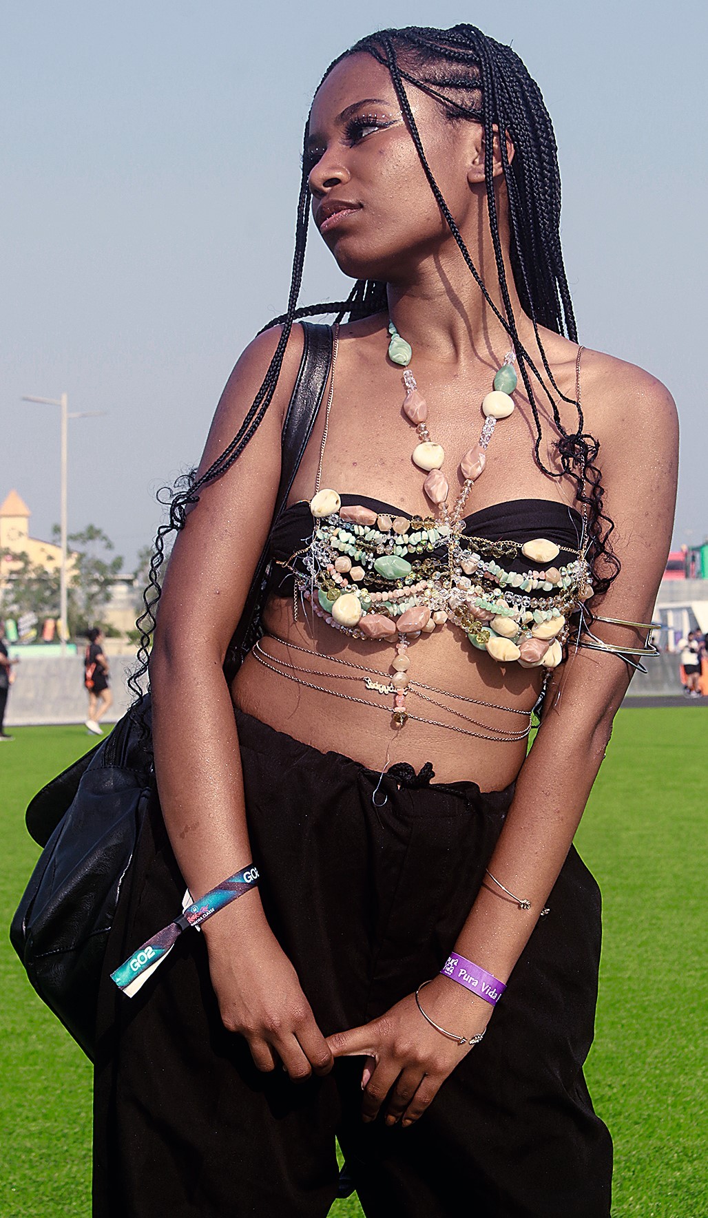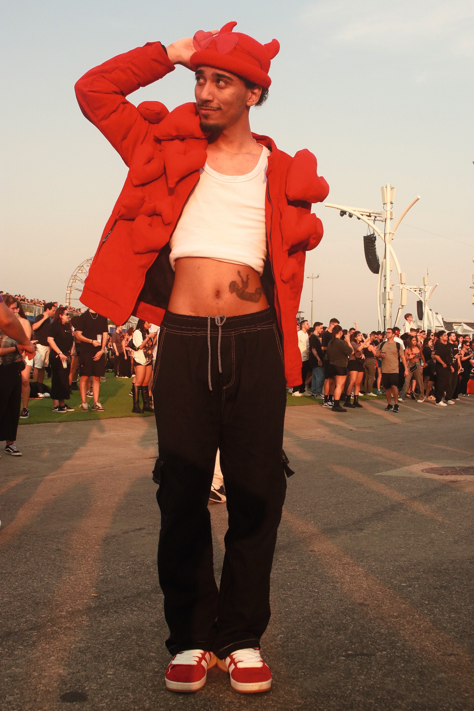 Ainda no quesito acessórios,body chains,ou correntes de corpo,que fazem as vezes de cintos e tops vazados,com recortes sinuosos,também foram hits,assim como looks all jeans. “O Rock in Rio é um lugar de celebração da música e da vida. A variedade de estilos é a cereja do bolo”,resume Manu.