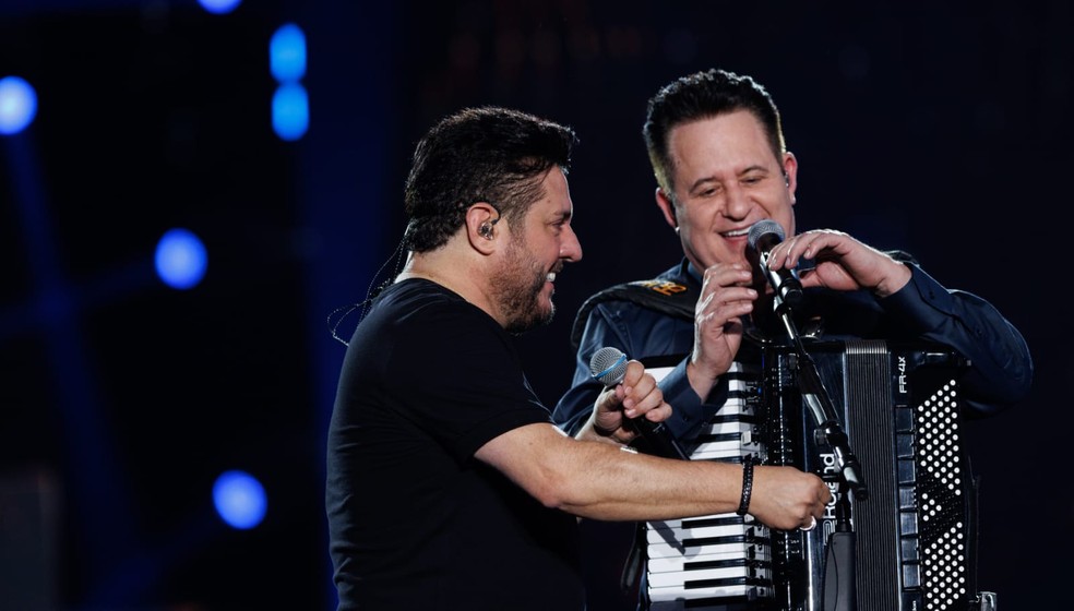 Os irmãos Zezé Di Camargo e Luciano,em show em 2024 — Foto: Divulgação