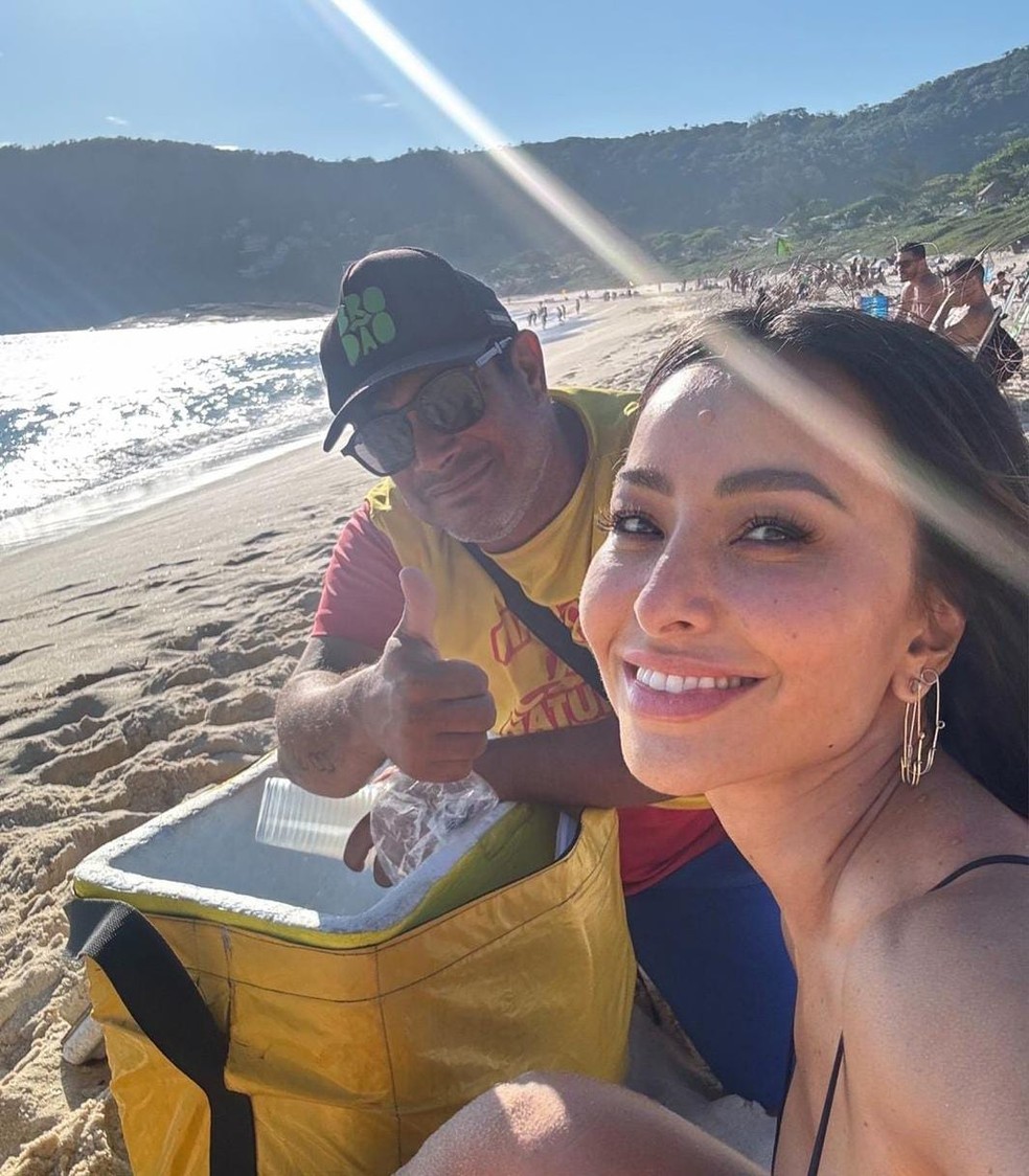 —Fiquei muito feliz e agradecido com o carinho da Sabrina. Ela me deu muita atenção,uma pessoa muito simples e humilde. Ela não experimentou o mate porque não está consumindo cafeína,mas gostou muito do sanduíche. Não imagina que ela ia postar nossas foto. Desde então as vendas aumentaram muito. Trabalho na praia desde os 16 anos,eu e minha família. Faça chuva ou faça sol,estou presente em Itacoatiara. Todo mundo conhece o Dentinho na areia. Criei meus filhos trabalhando na praia e,além de vender sanduíche,tenho uma barraca na altura do Costão e outra na entrada de Itacoatiara. É muito gratificante esse reconhecimento — declara Dentinho.