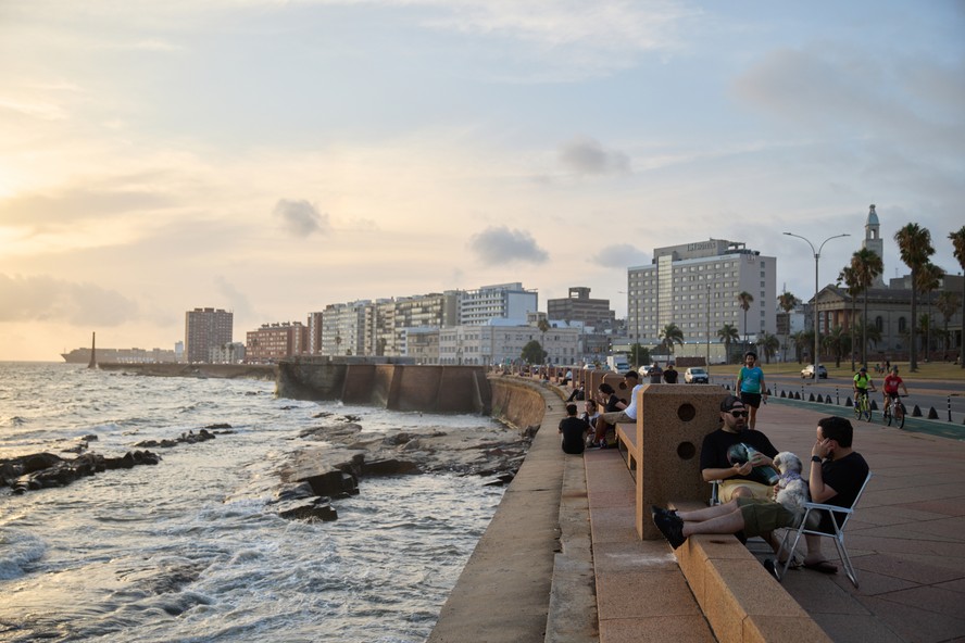 Um trecho dos quase 30 quilômetros de La Rambla,o calçadão à beira-rio que conecta diversos bairros de Montevidéu,no Uruguai — Foto: Tali Kimelman/The New York Times