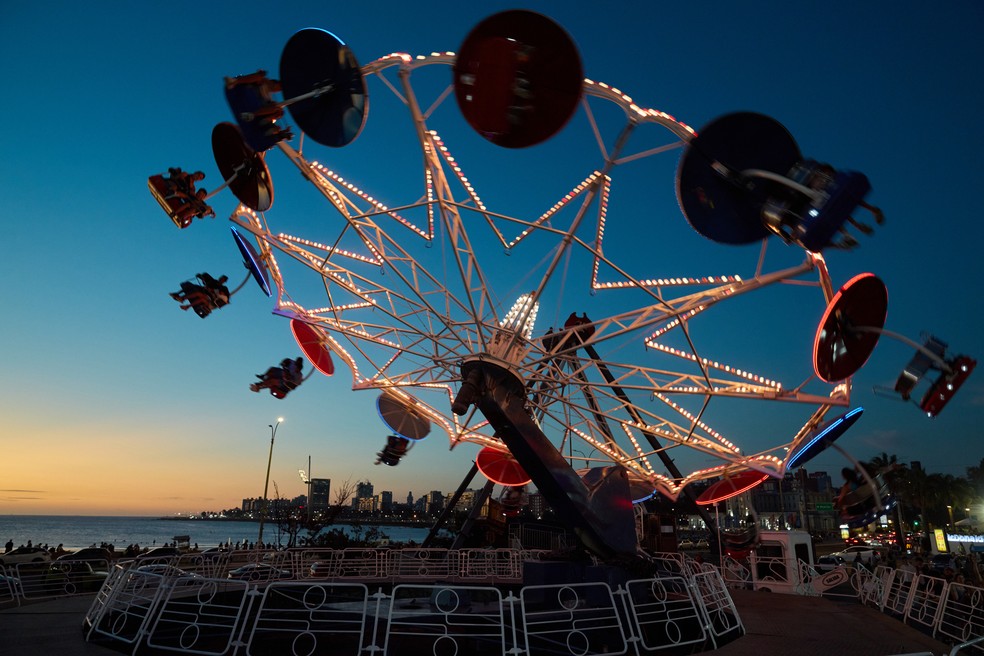 Um dos brinquedos do parque de diversão instalados no Parque Rodó,uma das atrações presentes ao longo do calçadão La Rambla,no Uruguai — Foto: Tali Kimelman/The New York Times