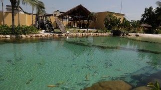 Lago de carpas do "resort green",no Complexo de Israel — Foto: Gabriel de Paiva/ Agência O Globo