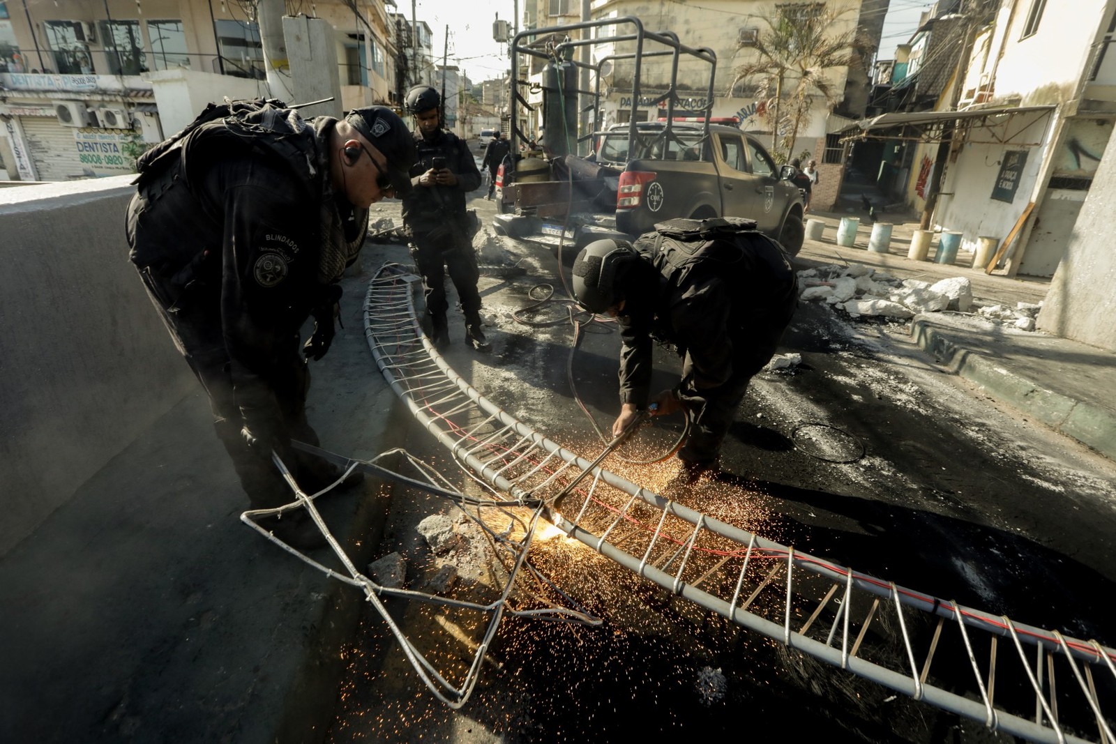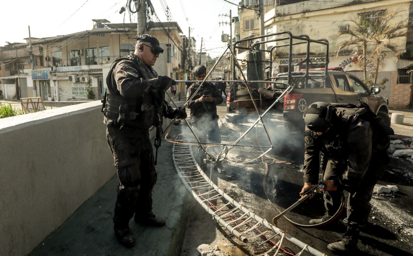 Polícia destrói o portal do Complexo de Israel — Foto: Gabriel de Paiva/ Agência O Globo
