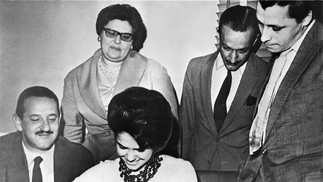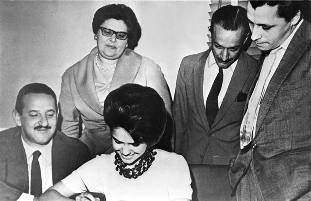 Elis Regina assinando contrato com a Rádio Gaúcha do grupo RBS aos 13 anos,em 1958 — Foto: Reprodução / Reddit