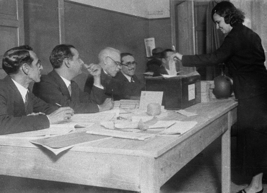 Mulher vota na seção da Rua das Laranjeiras,durante a eleição para a Assembleia Nacional Constituinte,em 1933 — Foto: Acervo O GLOBO