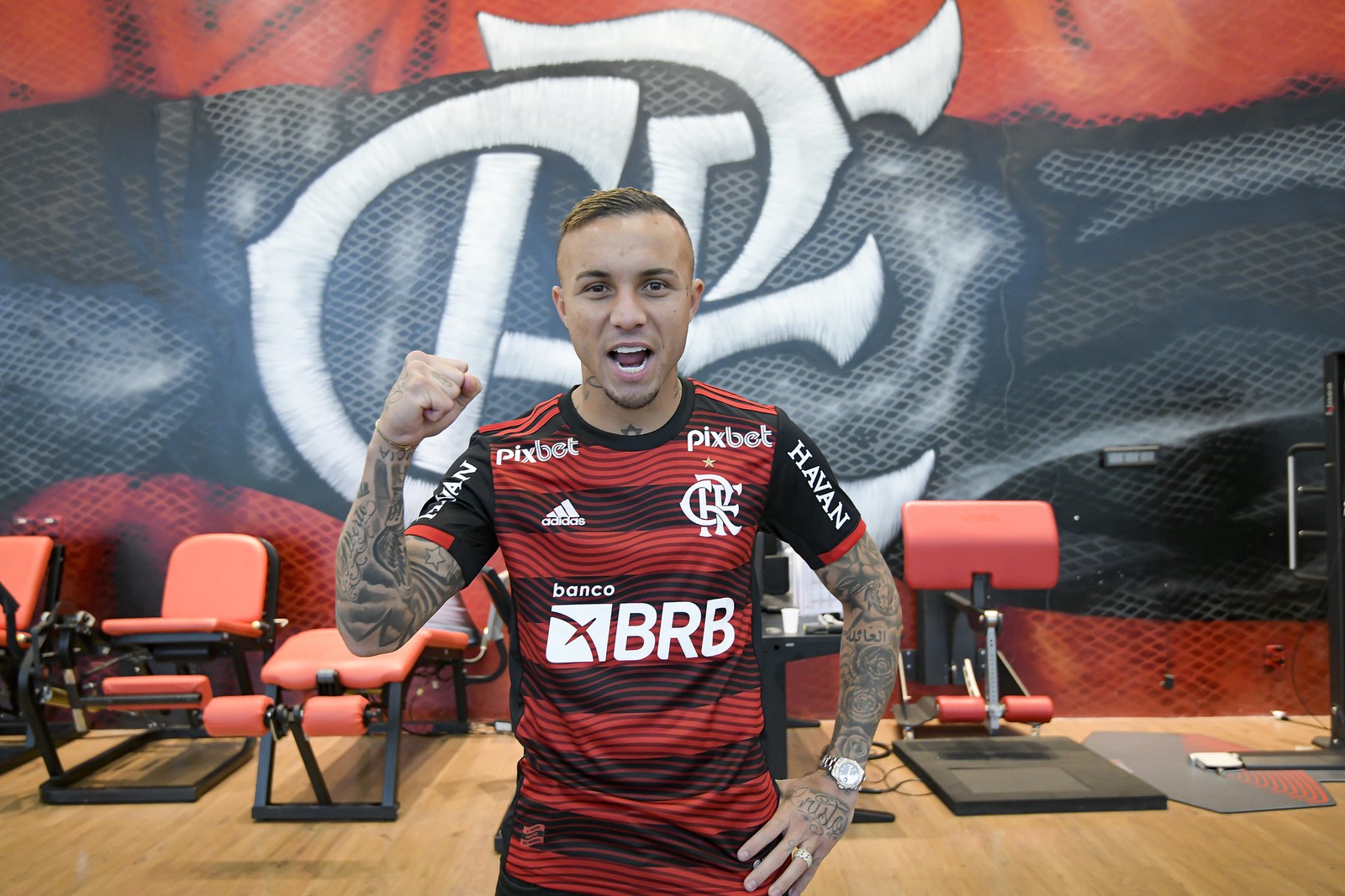 Everton Cebolinha custou 16 milhões de euros (R$90 milhões) aos cofres do Flamengo,que tem contrato com o ex-jogador do Benfica até 2026 — Foto: Alexandre Vidal/Flamengo