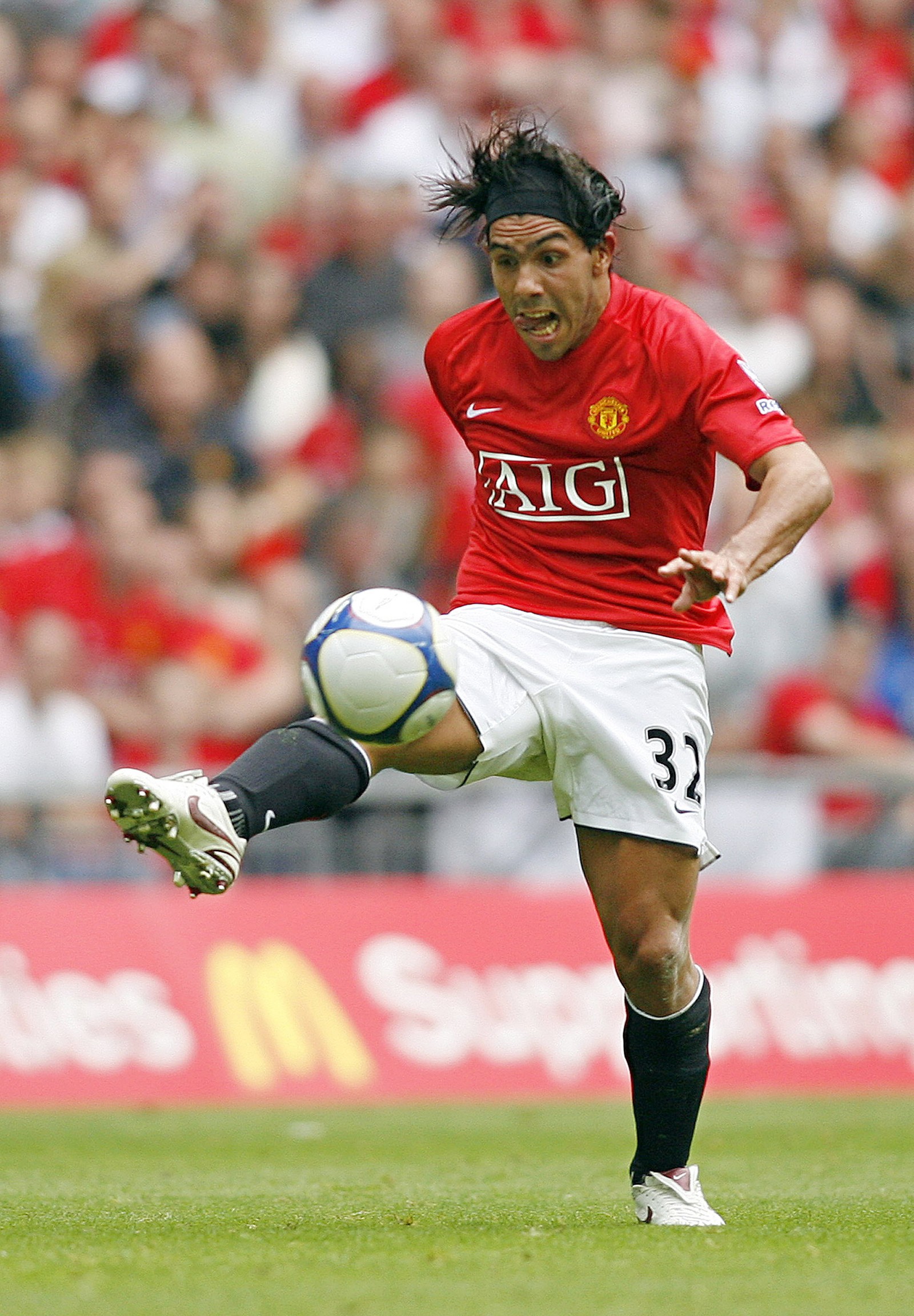 Depois do City,Carlitos Tevez foi para o lado vermelho de Manchester e brilhou com a camisa do United — Foto: Glyn Kirk/AFP