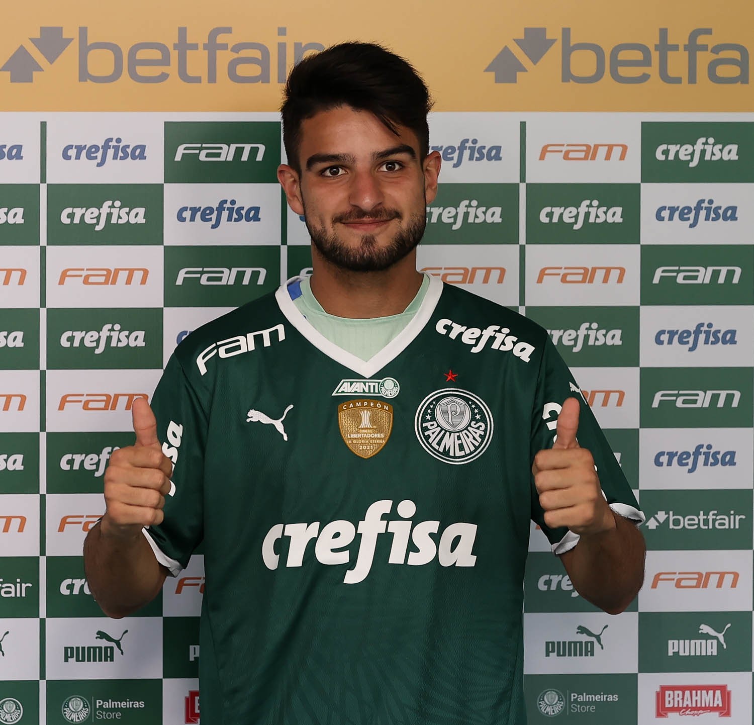 O argentino de 21 anos José Manuel López é a promessa contratada pelo Palmeiras nessa janela. O clube comprou 70% dos direitos do aacante do Lanús,em um negócio de 10 milhões de dólares (R$50 milhões) — Foto: Cesar Greco/Palmeiras