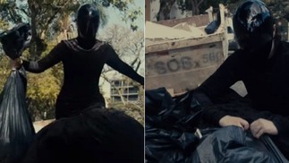 Gkay entrega convites para a festa 'Farofa da Gkay' em saco de lixo — Foto: Reprodução/Instagram