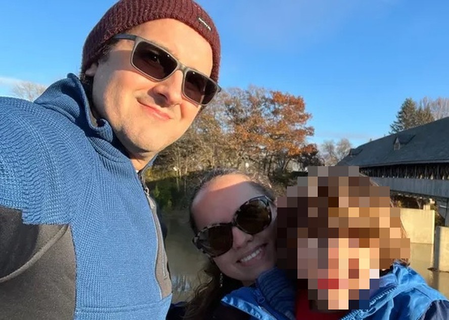 Carlos e Karina com o filho,que foi protegido durante o ataque — Foto: Reprodução