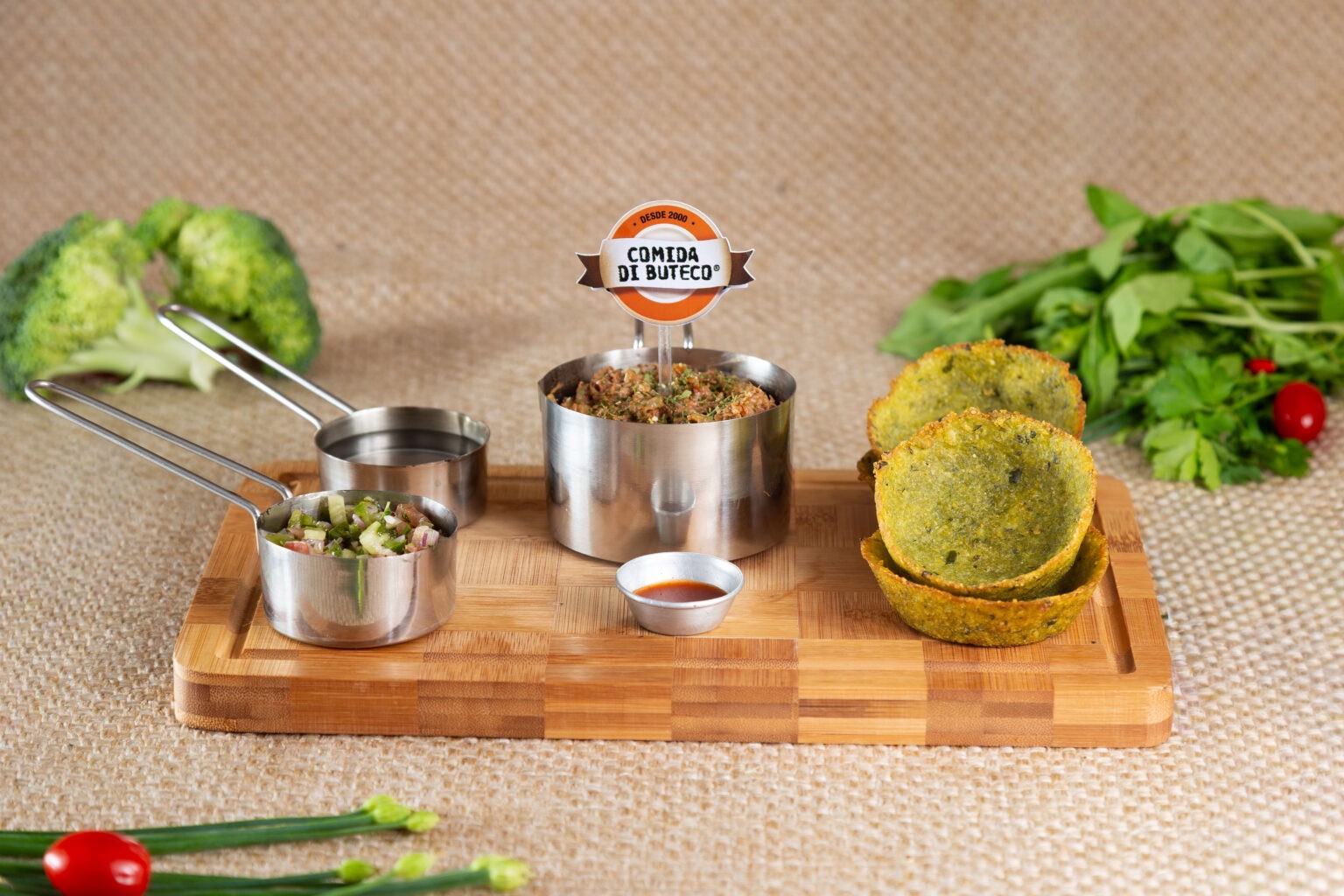 Alhos e Bugalhos: cestinhas de brócolis,língua e vinagrete de maxixe — Foto: Divulgação/Comida Di Buteco-Unisuam