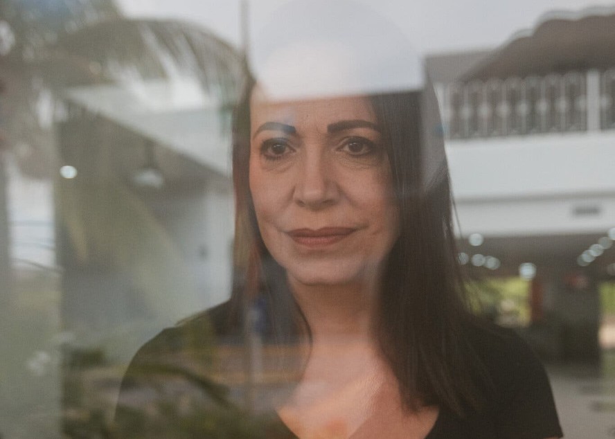 María Corina se recusou a dizer se poderia sair de casa. “É um teste difícil”,disse ela sobre o isolamento.