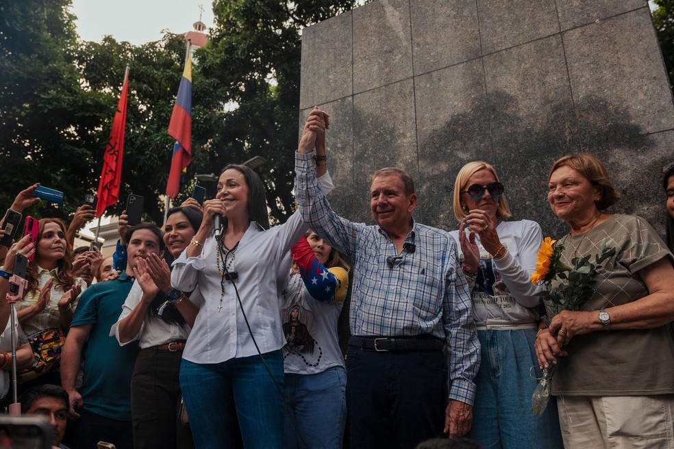 María Corina Machado e o diplomata e candidato presidencial,Edmundo González — Foto: Adriana Loureiro Fernandez / The New York Times