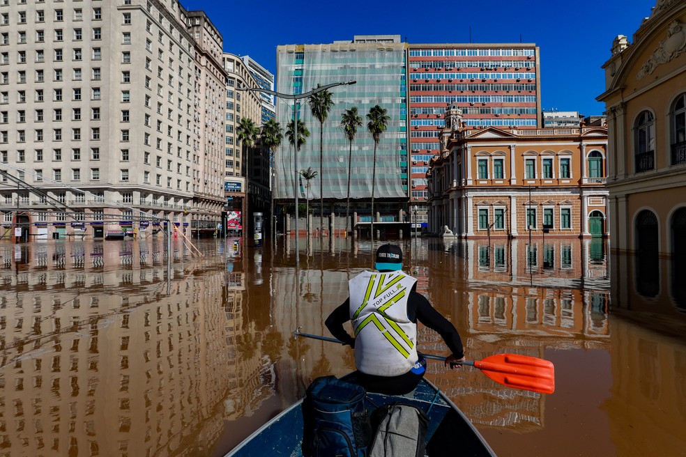 Chuvas fortes que atingiram o Rio Grande do Sul inundaram as ruas do centro histórico de Porto Alegre — Foto: Edilson Dantas / O Globo