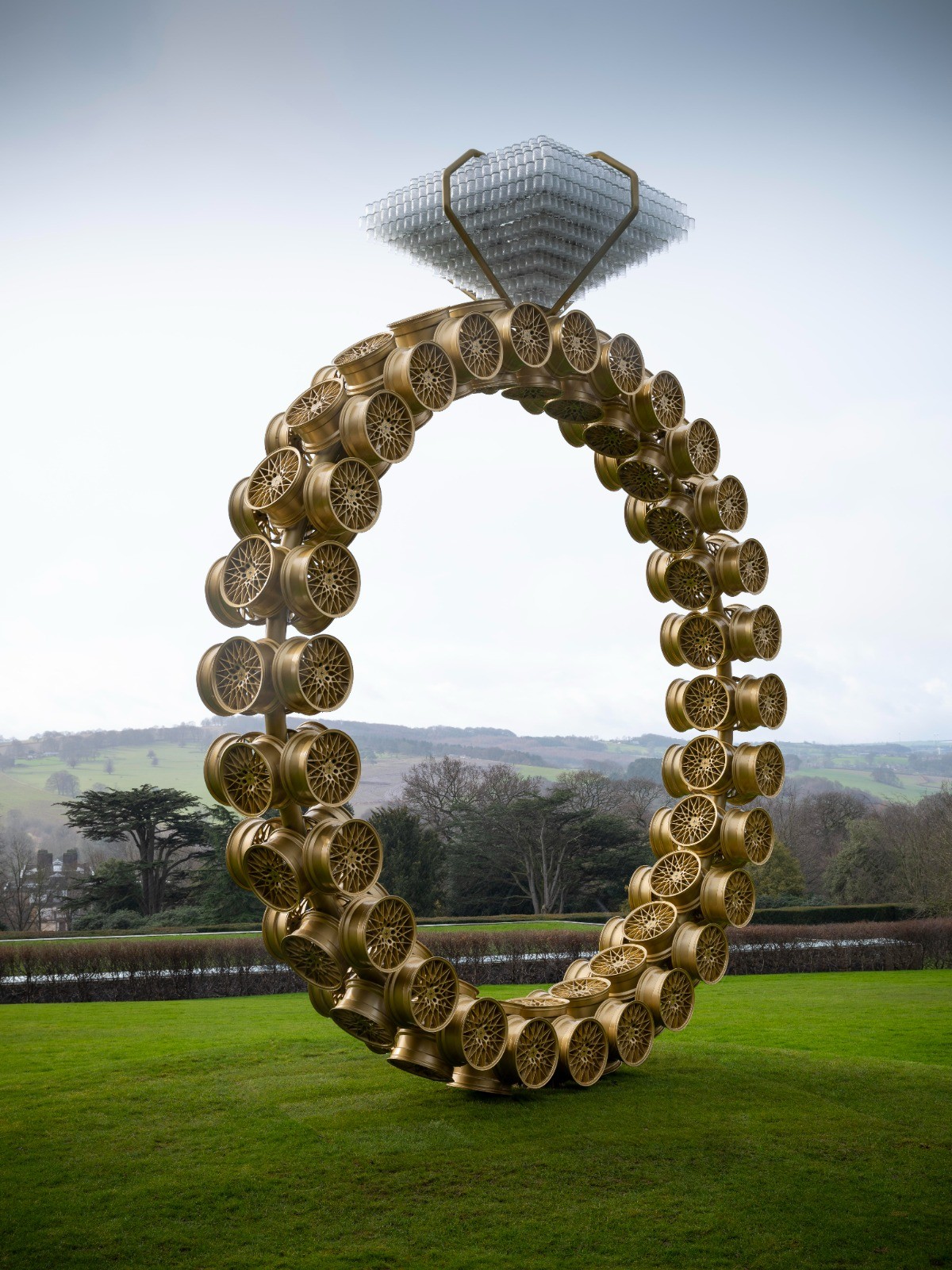 Joana Vasconcelos,com look Dior,entre Valquírias criadas para a maison francesa — Foto: Marcus Sabah