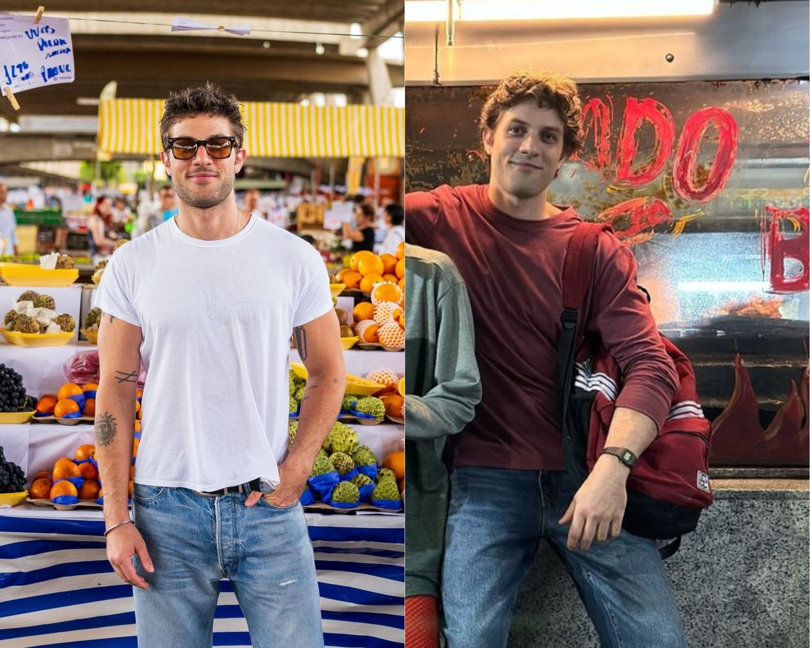 Chay Suede deixou os cabelos crescerem para interpretar o Mavi,em 'Mania de você' — Foto: Reprodução/Instagram e Globo/Divulgação