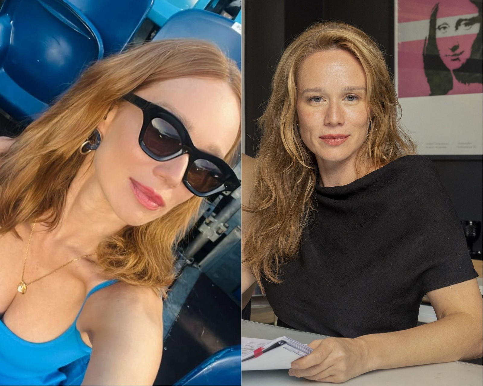 Mariana Ximenes estava com os cabelos na altura dos ombros e ruiva. Para viver Ísis,a atriz alongou os cabelos e deu uma leve clareada nos fios com mechas louras — Foto: Reprodução/Instagram e Globo/Fábio Rocha