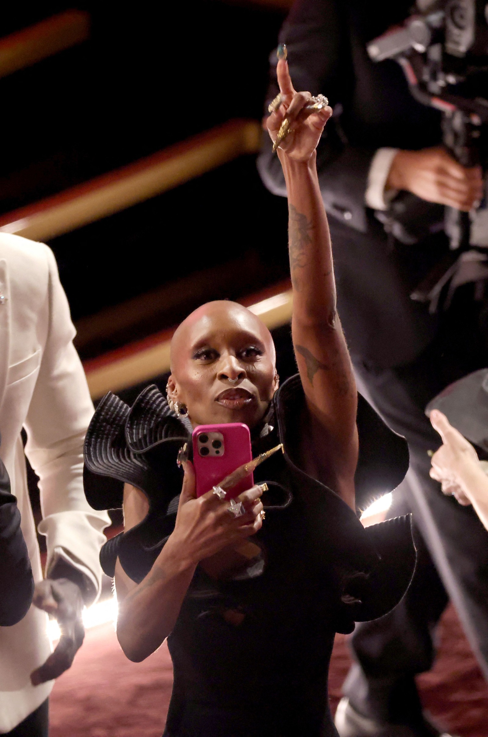Cynthia Erivo tirou fotos ela mesma,dentro do teatro — Foto: Kevin Winter/Getty Images/AFP
