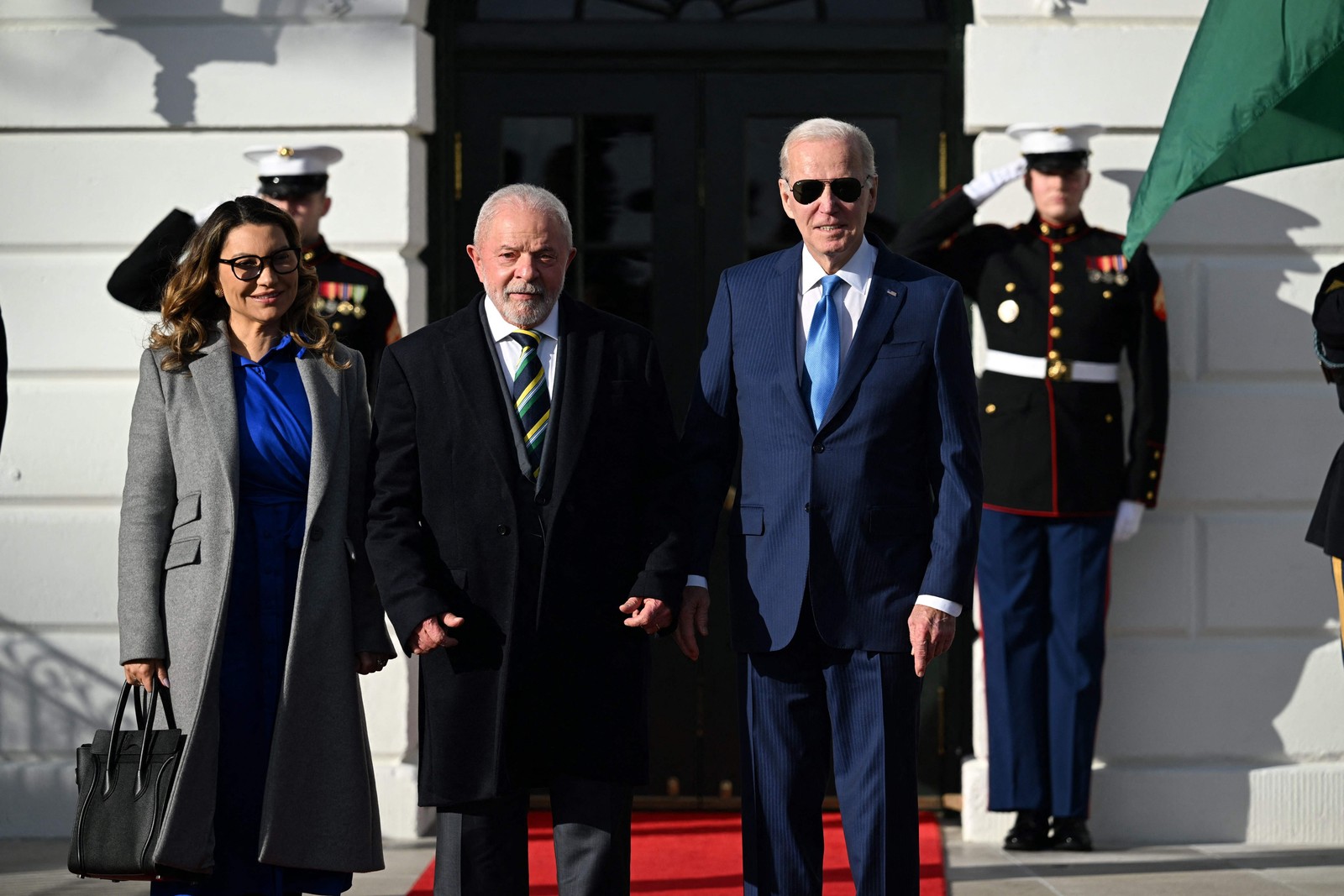 Biden recebeu Lula e a primeira-dama Janja na Casa Branca na sexta-feira — Foto: ANDREW CABALLERO-REYNOLDS/AFP