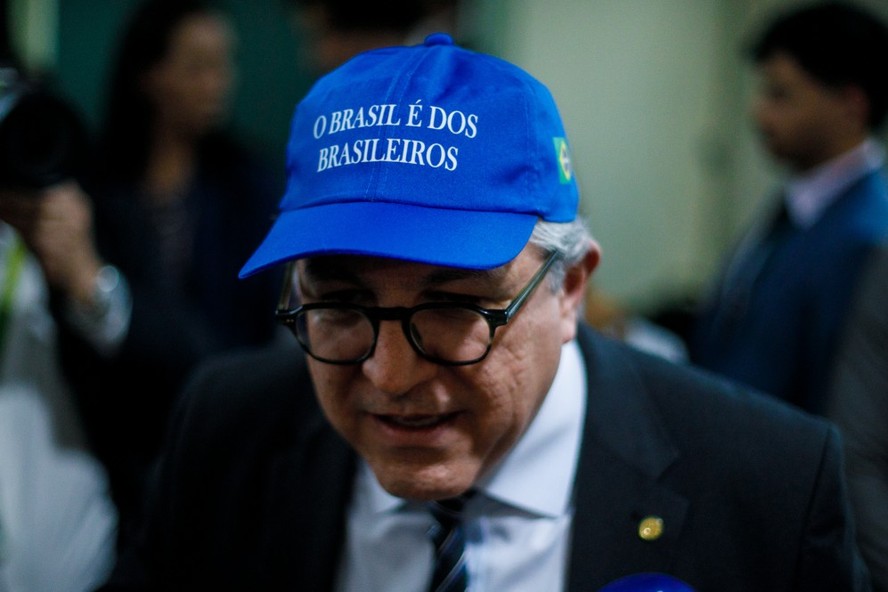 O ministro Alexandre Padilha usa o boné com a frase 'O Brasil é dos brasileiros' — Foto: Brenno Carvalho / Agência O Globo / 01/02/2025