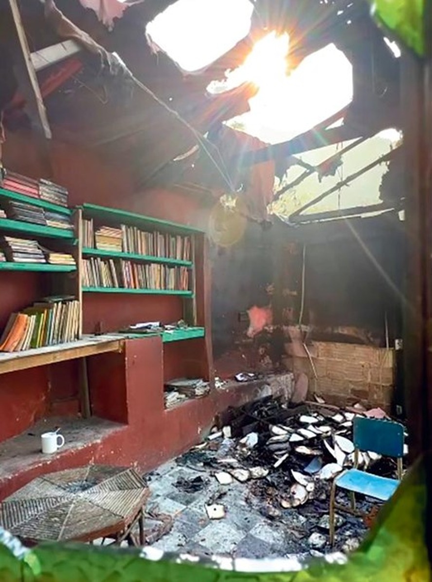 Fogo destruiu acervo da biblioteca comunitário no Pavão-pavãozinho — Foto: Reprodução