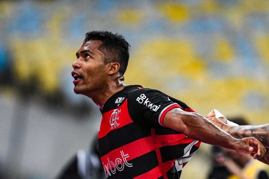 Alex Sandro comemora o primeiro gol marcado com a camisa do Flamengo — Foto: Celso Pupo/Fotoarena/Agência O Globo