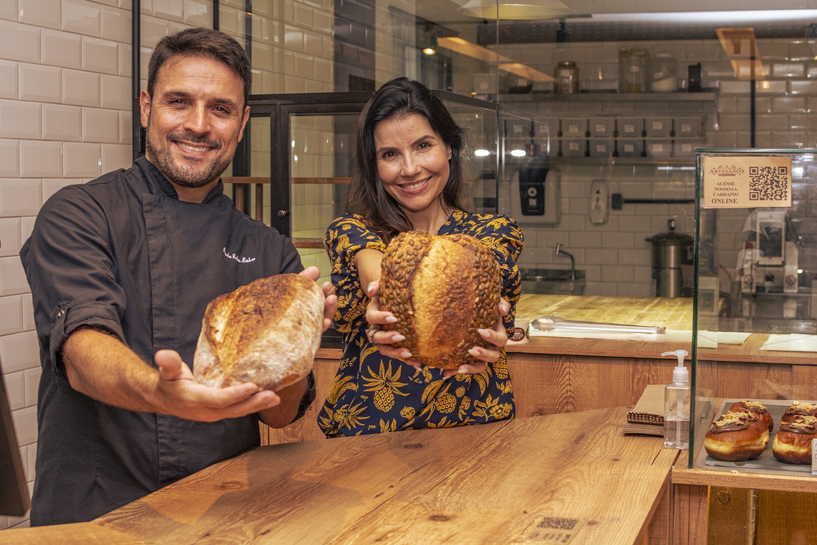 O casal Ricardo Rocha e Mariana Massena na Artesanos Bakey,que tem loja no Recreio (Av. Genaro de Carvalho 1435) e em Botafogo (Rua São João Batista 26)) — Foto: Gabriel Ávila