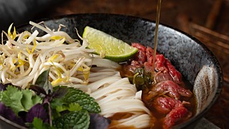 Asiática. No Si-chou (@restaurantesichou),o chef Elia Schramm serve o Pho (R$ 74),sopa vietnamita com legumes,vegetais,carne,cogumelos secos e alga kombu — Foto: Divulgação/Rodrigo Azevedo