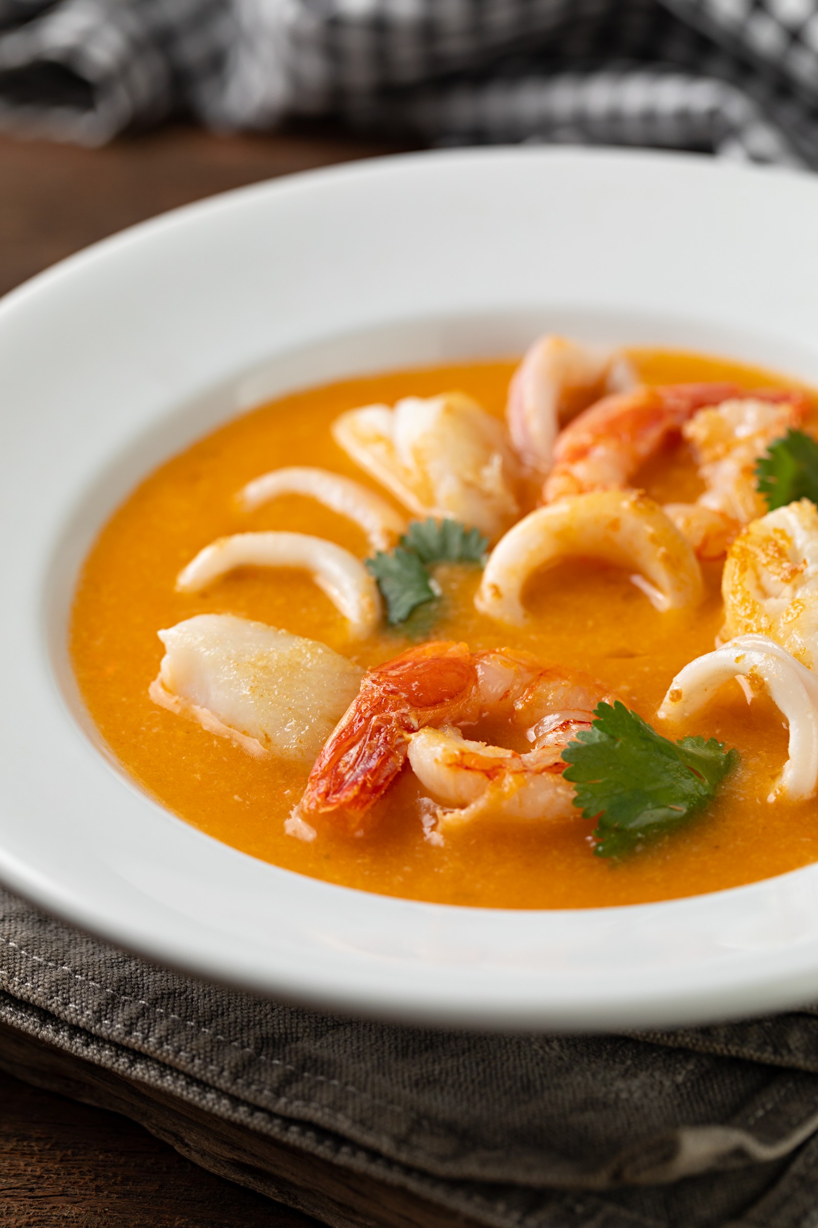 Releitura. O chef Yan Thompson,do Guimas (@guimasrestaurante),criou uma releitura da Sopa Leão Veloso (R$ 68) com peixe,lula,camarão em caldo à base de tomate,pimentão vermelho e coentro,creme de leite e um fio de dendê — Foto: Divulgação/Rodrigo Azevedo