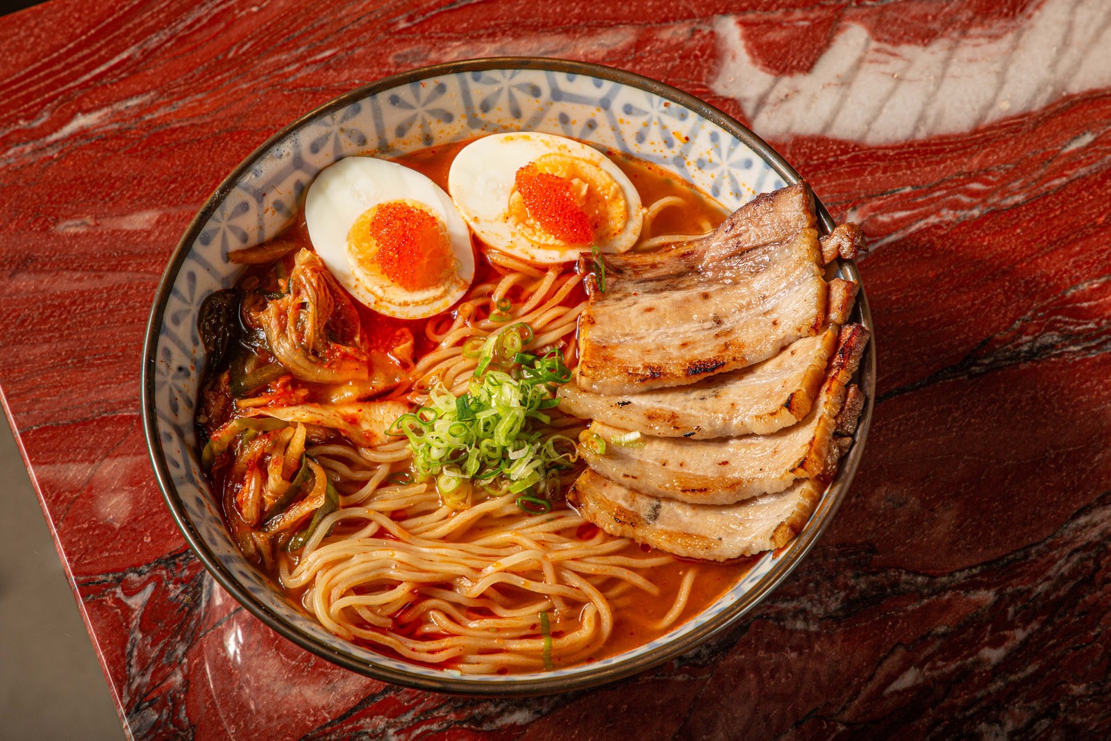 Apimentado. No Suibi (@suibi.restaurante),o chef Sei Shiroma criou a receita do Kimchi Ramen (R$ 69),caldo apimentado com barriga de porco,ovo marinado,kimchi e massa de ramen — Foto: Divulgação/Rafael Mollica