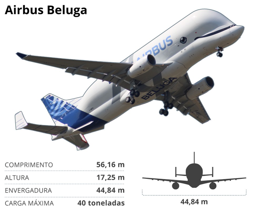 Beluga pode transportar até 40 toneladas — Foto: Arte O Globo