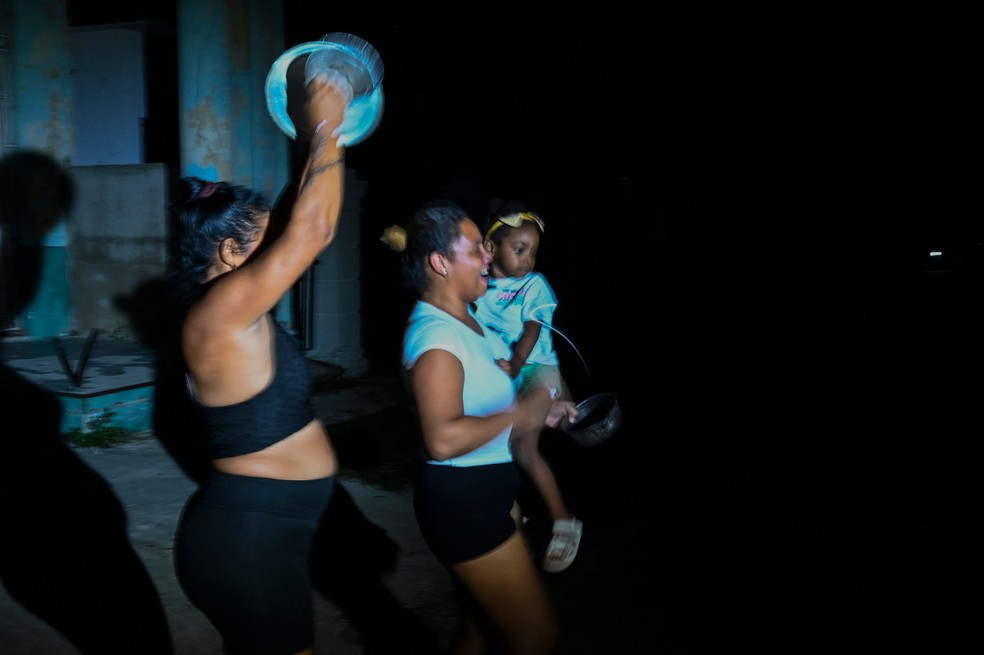 Cubanos fazem panelaço para exigir a volta do fornecimento de energia elétrica,durante a terceira noite de um apagão nacional em Havana — Foto: YAMIL LAGE / AFP