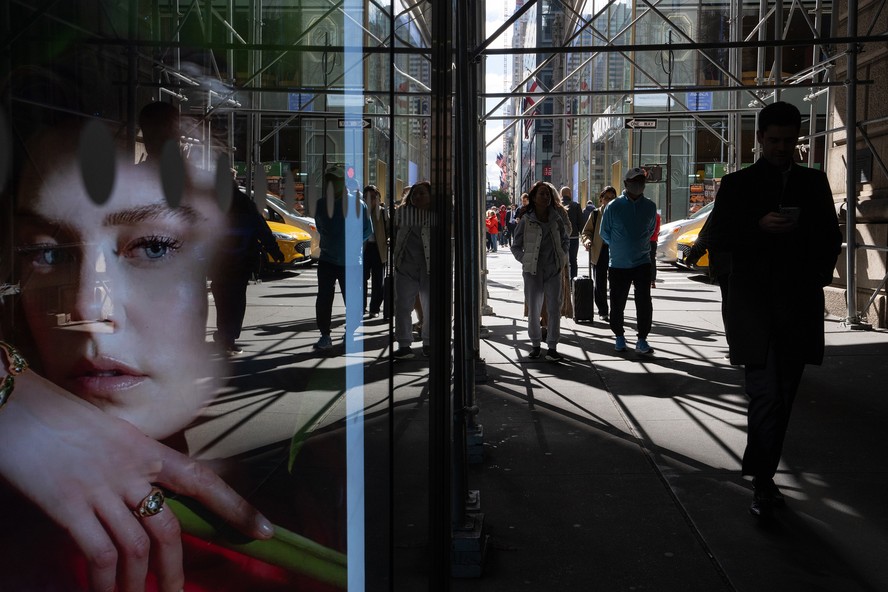 Pedestres na Quinta Avenida,uma das vias mais movimentadas de Nova York,que poderá ganhar calçadas mais largas,mais arborizadas e com pontos de descanso — Foto: Todd Heisler/The New York Times