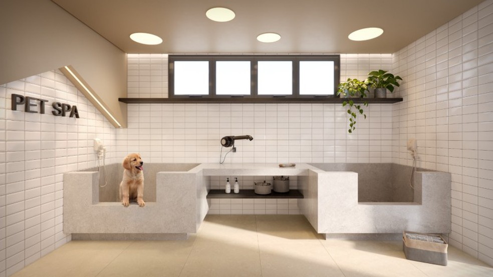 Com apartamentos cada vez menores e animais de estimação mais presentes nos lares,uma área com banheiras,água quente e bancada com secador para dar um trato no pelo do cachorro dispensa a ida ao pet shop.