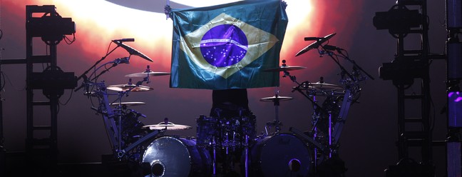 Incubus exibe bandeira do Brasil em show no Rock in Rio 2024 — Foto: Fabiano Rocha/Agência O Globo