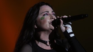 Evanescence mostra bandeira do Brasil durante show do Rock in Rio 2024 — Foto: Alexandre Cassiano/Agência O Globo