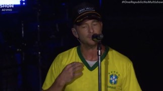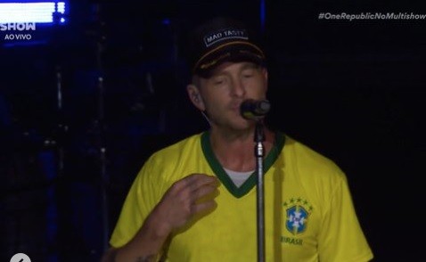 Vocalista do OneRepublic,Ryan Tedder usa camisa do Brasil no Rock no Rio — Foto: Reprodução/Multishow