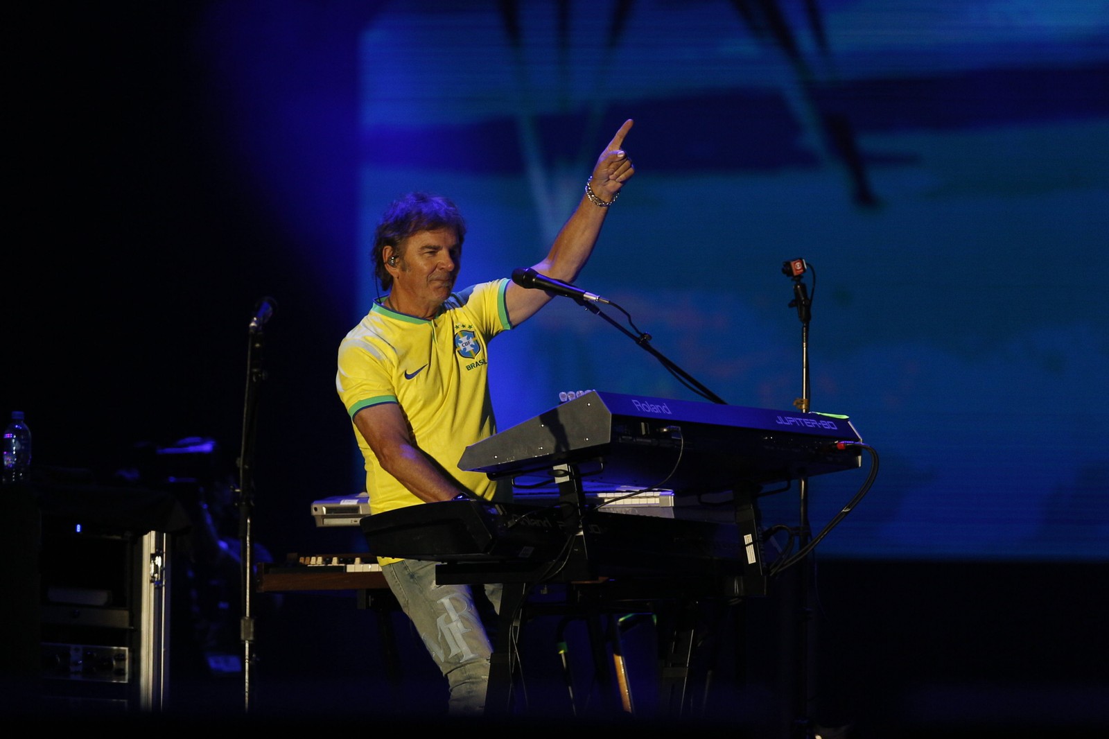 Músicos da banda Journey apareceram com camisa do Brasil no Rock in Rio — Foto: Alexandre Cassiano/Agência O Globo