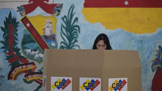 Uma mulher vota durante a eleição presidencial venezuelana,em Caracas,em 28 de julho de 2024. — Foto: Yuri CORTEZ / AFP
