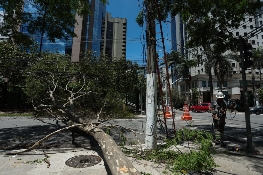 Queda de árvores e falta de luz no Itaim Bibi,Zona Sul de São Paulo — Foto: Maria Isabel Oliveira/Agência O Globo