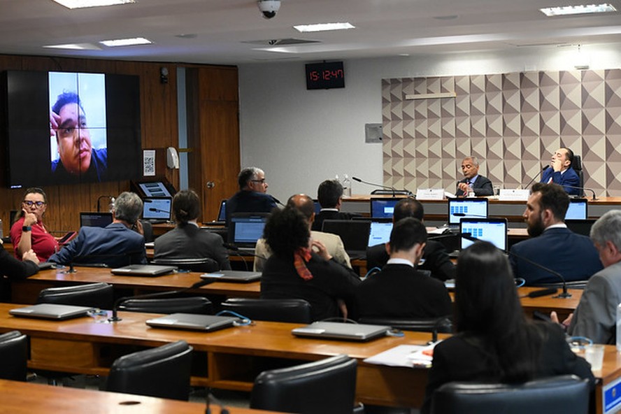 William Rogatto em depoimento por vídeo à CPI das Apostas — Foto: Agência Senado