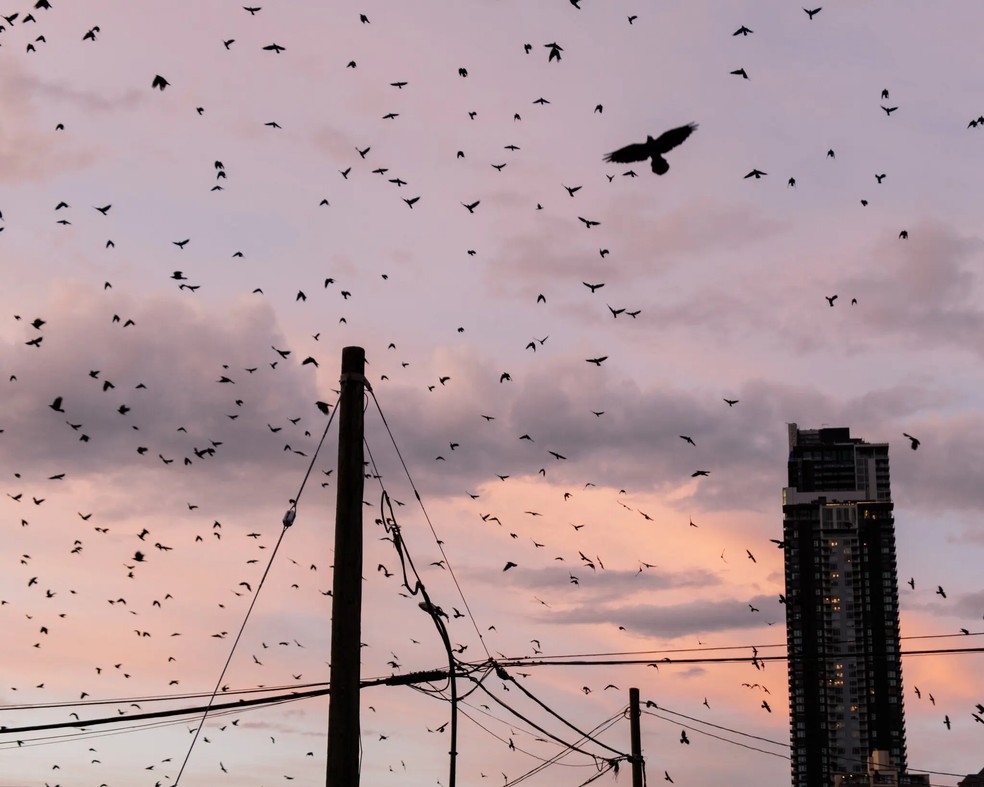 Ataques de corvos ofendidos podem se tornar o tema de filmes de terror,com vidas sendo aparentemente transformadas no pesadelo hitchcockiano de “Os Pássaros” — Foto: Reprodução/NYT