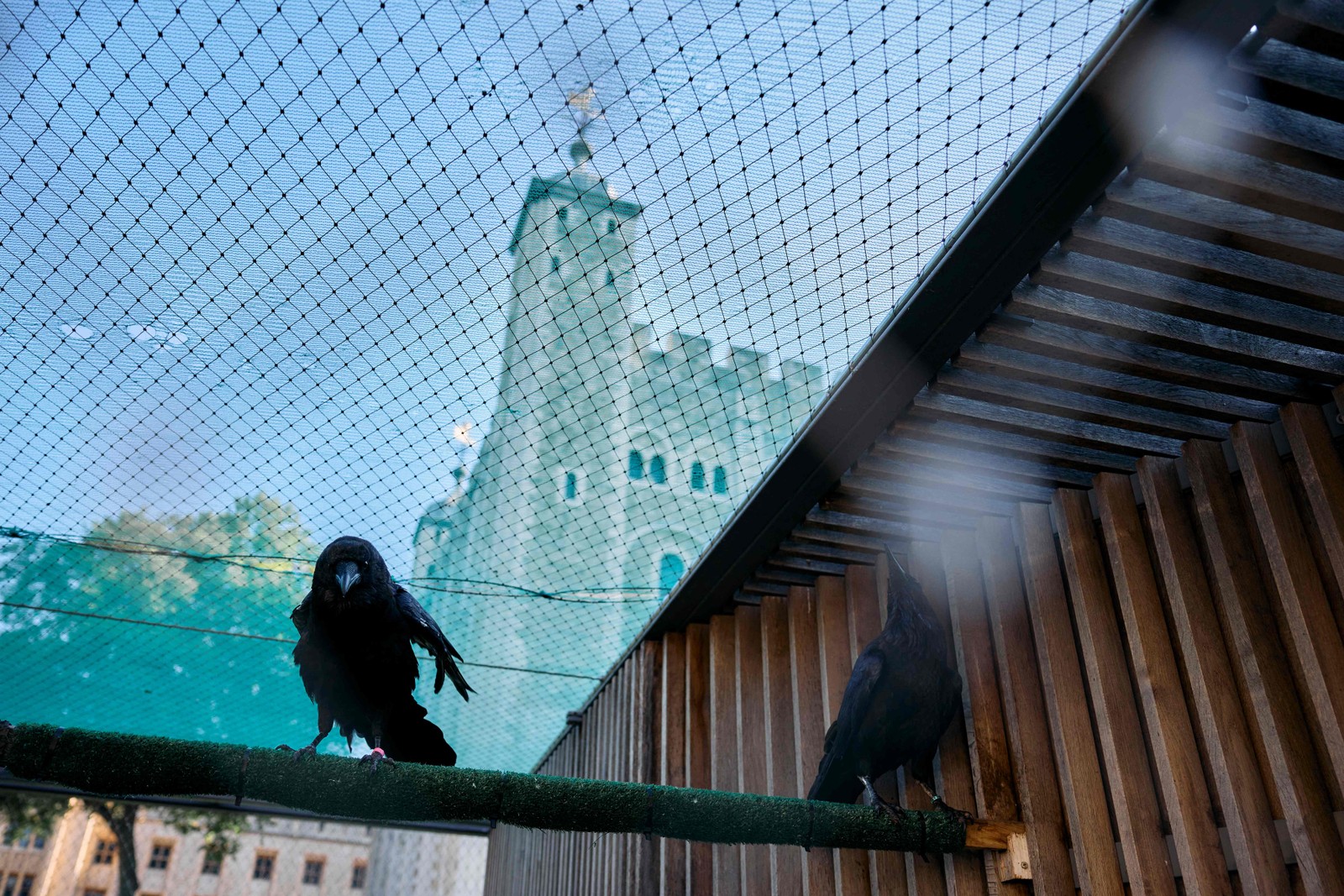Corvos dentro de seu recinto na Torre de Londres,a antiga fortaleza construída no século XI às margens do Rio Tâmisa — Foto: Benjamin Cremel / AFP